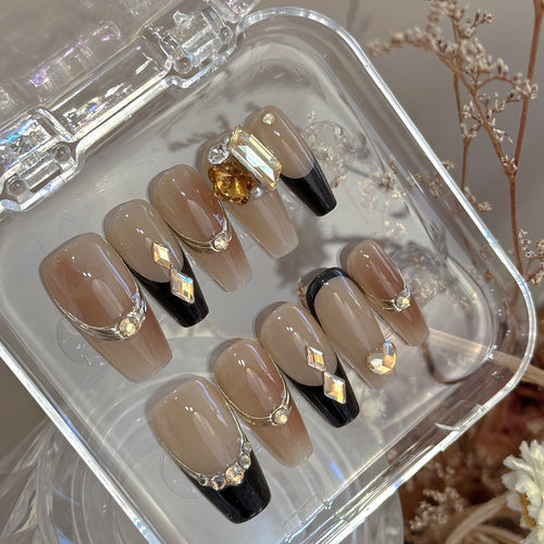 French Gradient Moon Shadow Zihui Gentle Temperament Pile Rhinestone Removable Wear Armor